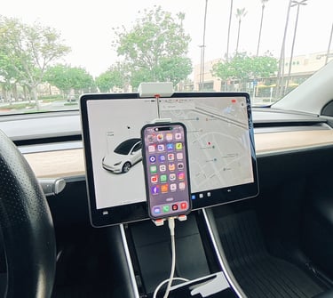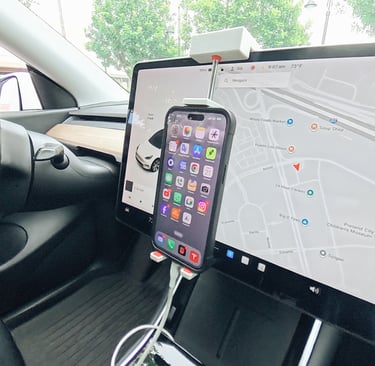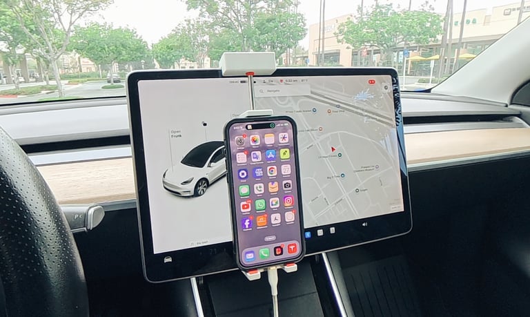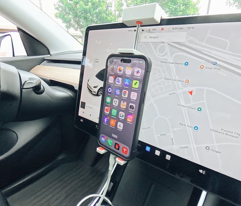 Discover the ultimate portable smartphone mount for your Tesla's floating touchscreen experience.